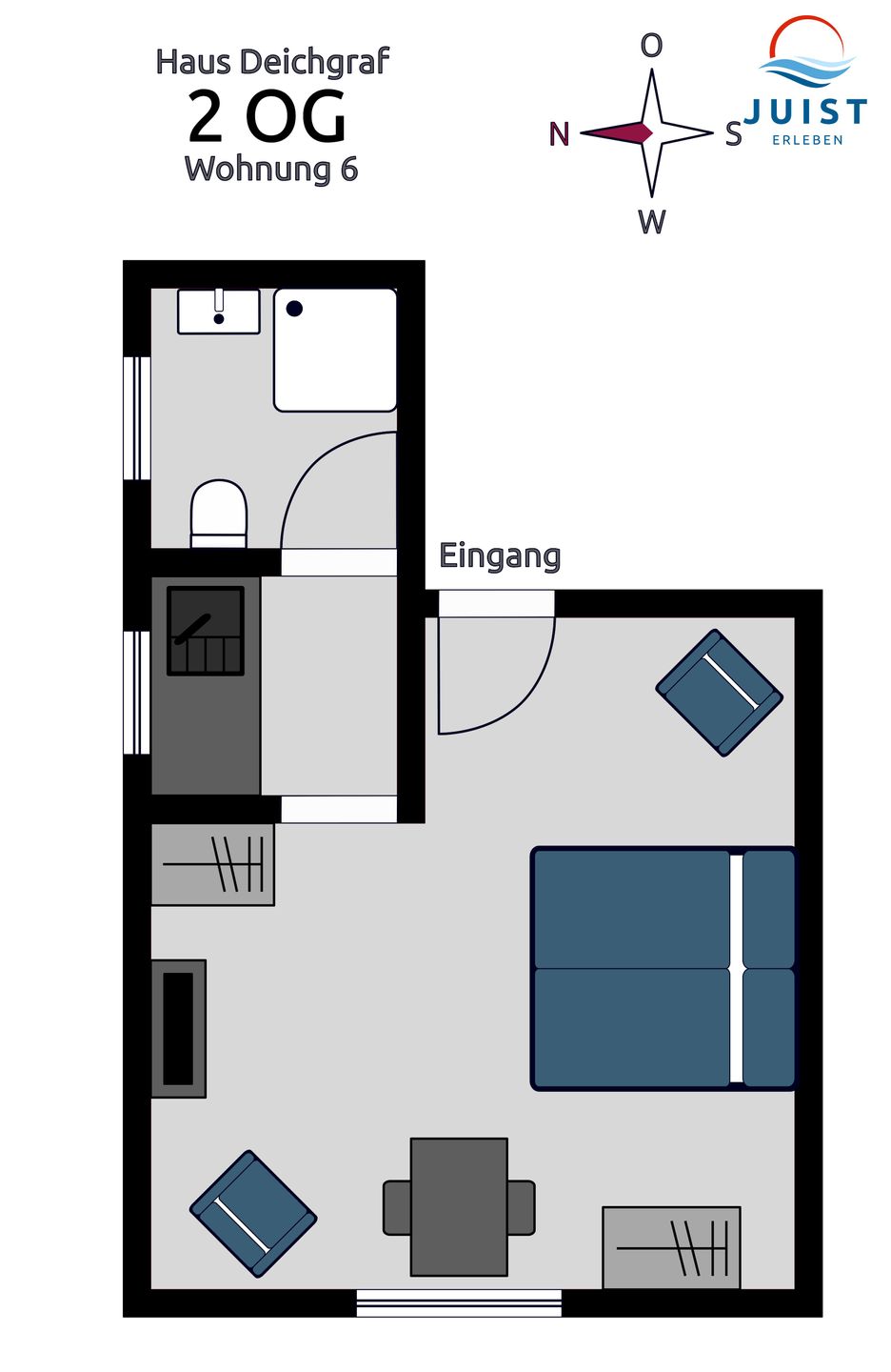 Das Haus Deichgraf ist sehr zentral gelegen und umfasst 7 Wohnungen & Studios für 1 – 4 Personen.